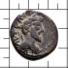 ΓΑΖΑ - ςNC [= Jahr 256, d. h. 195-196 n. Chr.]. Tempel mit zwei Säulen. Darin links Artemis mit Bogen stehend nach r., rechts Marnas stehend nach l., sich die Hände schlagend. Dazwischen מ (Gaza-Symbol, mem). |
