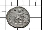 PVDICITIA. Pudicitia sitzt nach l., Kopf frontal. Die r. Hand ruht auf der Brust. Sie hält im l. Arm ein Zepter. |